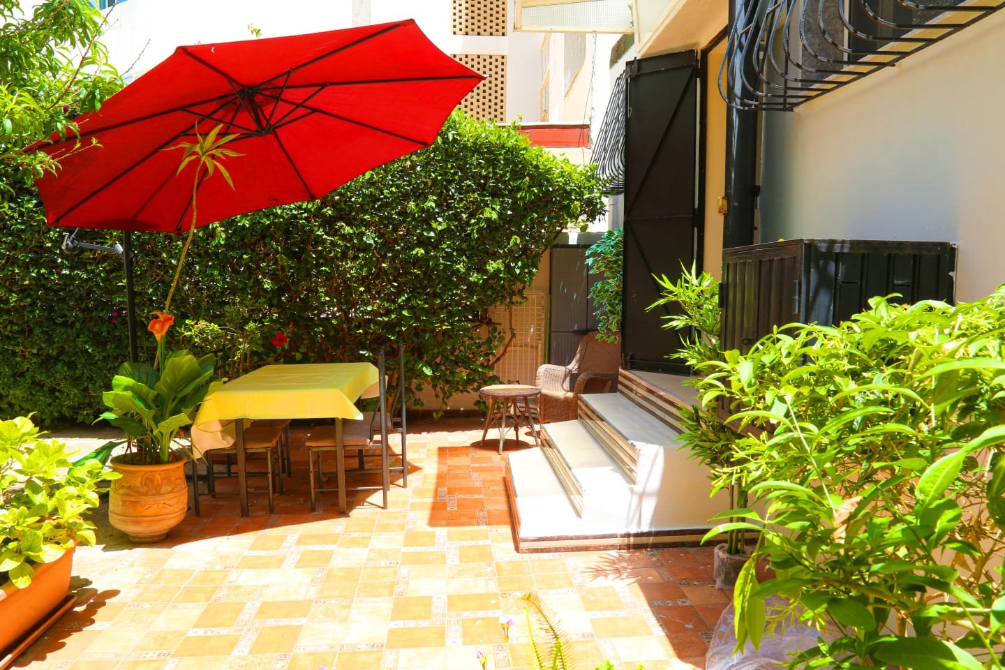 🌿 Grande terrasse/jardin avec table à manger et chaises